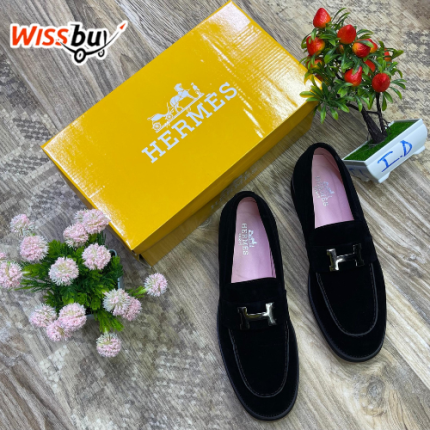 Mocassins en velours avec boucle-« H »-/Chaussures de ville en daim noir -W -FRANCKestlle