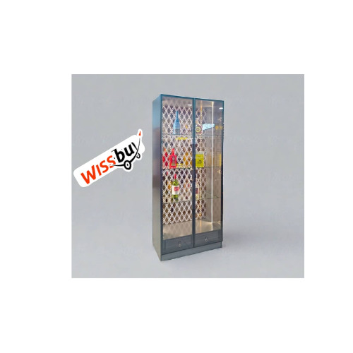 • Vitrine de sécurité: Cette vitrine est conçue pour offrir une sécurité accrue grâce à sa façade en treillis métallique. Elle est idéale pour stocker ou exposer des objets de valeur tout en les protégeant.
