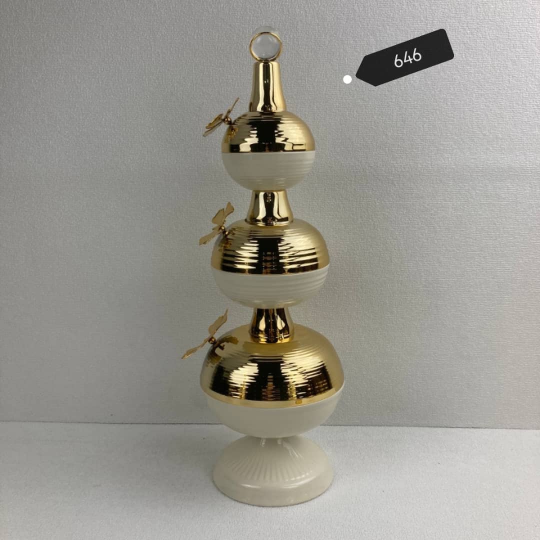 Son design bicolore et ses détails dorés lui confèrent une apparence raffinée, idéale pour la décoration intérieure.