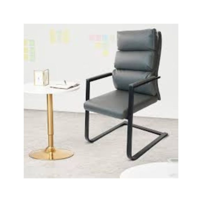 CLATINA Chaise de bureau en cuir, grandes et hautes chaises de réception confortables avec accoudoirs rembourrés et base luge pour conférence, salle d'attente, maison, gris