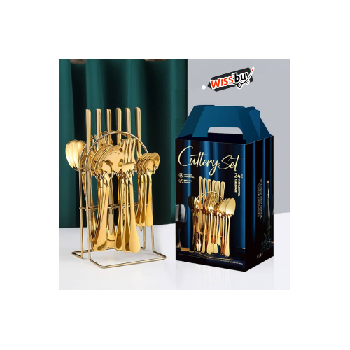• Quantité : L’emballage mentionne « 24 PCS », indiquant que l’ensemble contient 24 pièces, ce qui est une taille courante pour un service de couverts destiné à plusieurs personnes.