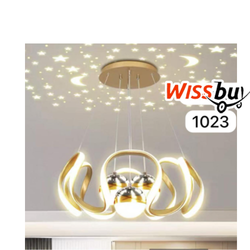 Il est doté d’une structure en anneaux ronds, probablement en fer avec une finition dorée ou nickel brossé, lui conférant une allure contemporaine et épurée.Il utilise la technologie LED pour un éclairage efficace et moderne. Une caractéristique distinctive est sa capacité à projeter un motif de ciel étoilé (étoiles et lunes) sur le plafond, créant une ambiance romantique ou apaisante. Il peut être équipé d’une télécommande pour un contrôle facile des fonctions d’éclairage et de projection. Son design lui permet de s’intégrer harmonieusement dans divers styles d’intérieur, tels que le scandinave, le moderne ou l’industriel.
