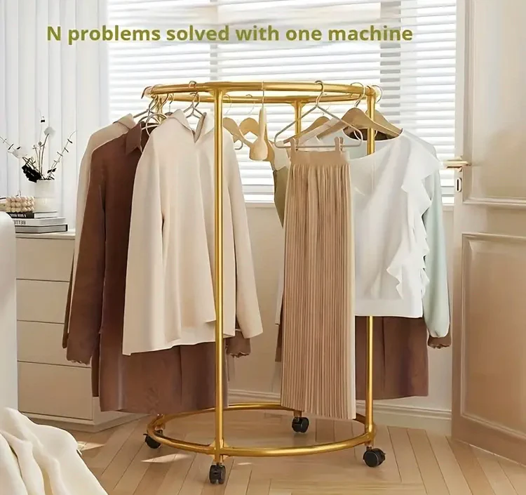 La forme circulaire facilite l’accès et la visualisation de tous les vêtements suspendus, permettant une meilleure organisation et un choix plus rapide.
