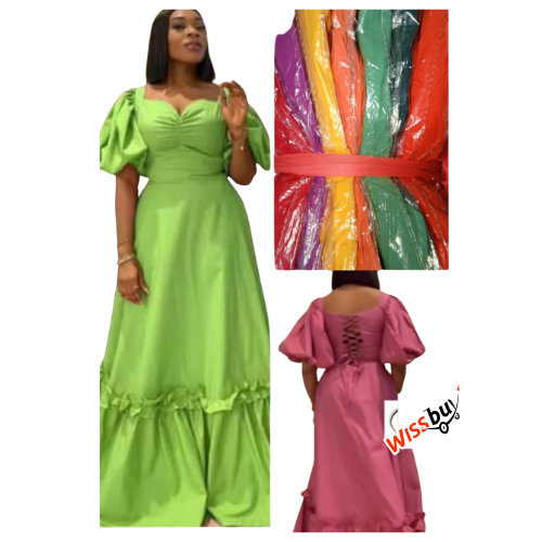Robe Longue Manches Bouffantes avec Laçage au Dos - CLS