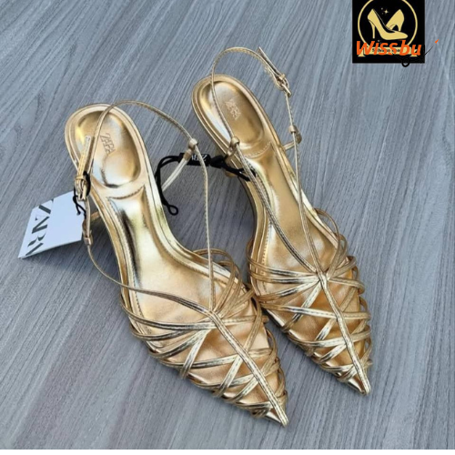 Elles se distinguent par leur design complexe de brides fines entrecroisées qui forment une structure de type « cage » sur le dessus du pied, se terminant en une pointe effilée.