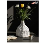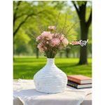 vase en céramique blanche au design texturé, décrite comme élégante et moderne, et adaptée à la décoration intérieure. Caractérisée par une texture distincte et un design unique qui ajoute une touche esthétique à l’intérieur. elle peut être placée dans des pièces comme le salon ou la salle de séjour.